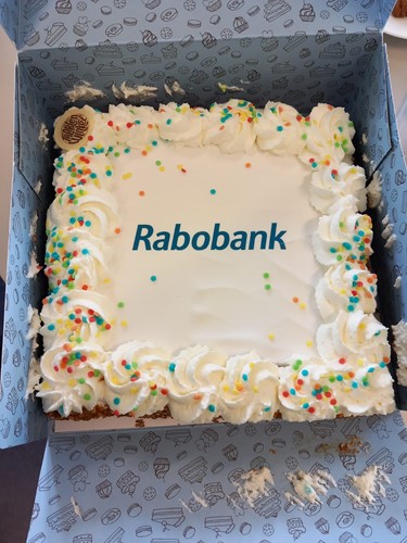 Bij de overhandiging kregen Marleen Oostland en Grietje Boonstra van Solidair Groningen & Drenthe ook nog een heerlijke taart.
